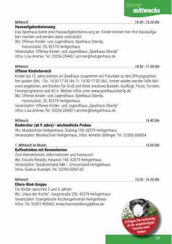 Wo: „Haus der Kirche“, Hauptstraße 206, 42579 Heiligenhaus Veranstalter: Evangelische Kirchengemeinde Heiligenhaus Infos: Tel. 02051-965460, erwachsenenbildung@kkva.de