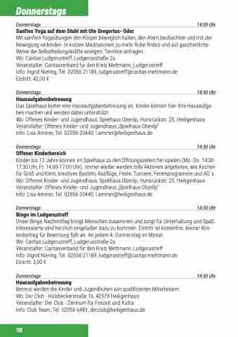 Info: Ingrid Niering, Tel. 02056 21189, ludgerustreff@caritas-mettmann.de