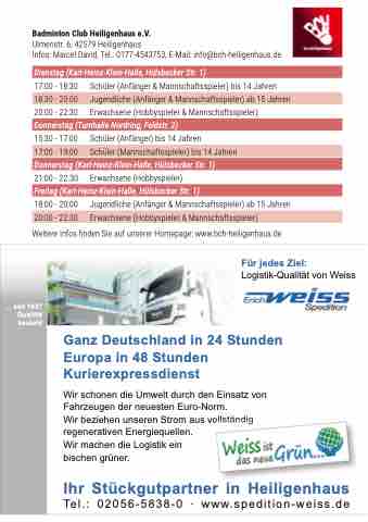 Infos: Marcel David, Tel.: 0177-4543753, E-Mail: info@bch-heiligenhaus.de