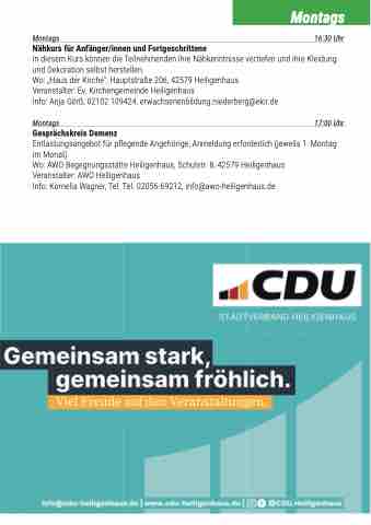 Info: Kornelia Wagner, Tel. Tel. 02056-69212, info@awo-heiligenhaus.de