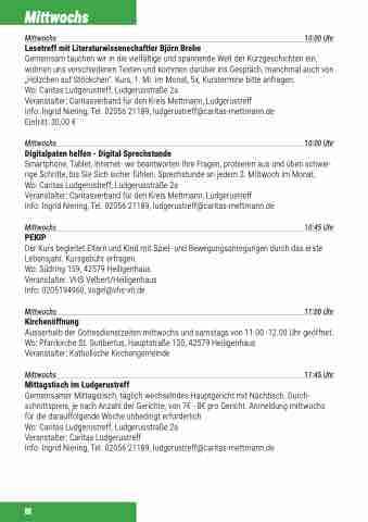 Info: Ingrid Niering, Tel. 02056 21189, ludgerustreff@caritas-mettmann.de