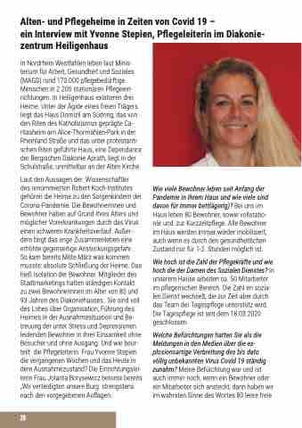 Welche Befürchtungen hatten Sie als die Meldungen in den Medien über die ex- plosionsartige Verbreitung des bis dato völlig unbekannten Virus Covid 19 ständig zunahm? Meine Befürchtung war und ist auch immer noch, wenn ein Bewohner oder ein Mitarbeiter sich ansteckt, dann haben wir im wahrsten Sinne des Wortes 80 leere freie